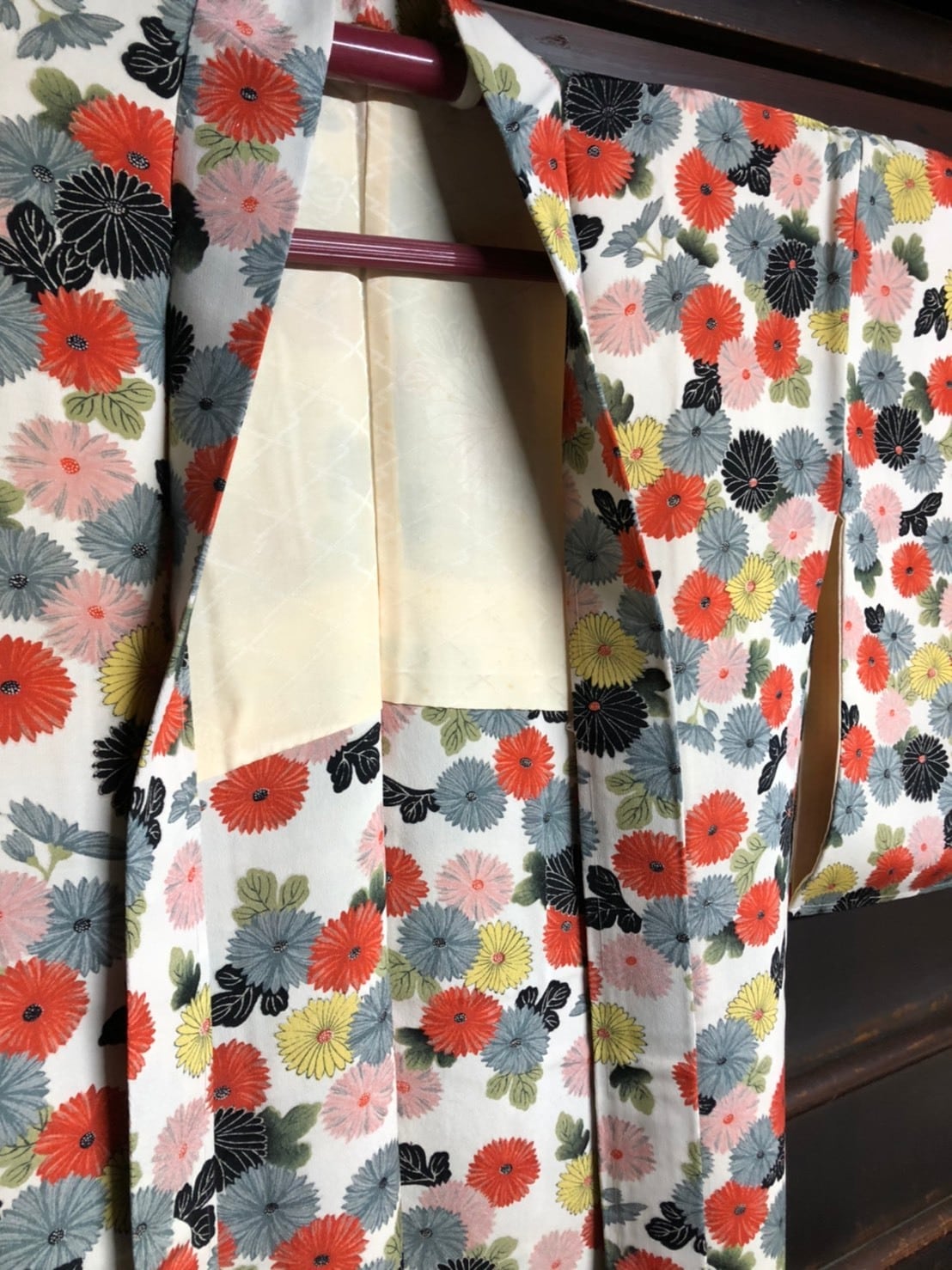 アンティーク✿︎正絹 白地にとりどりの菊の花ちりめん羽織